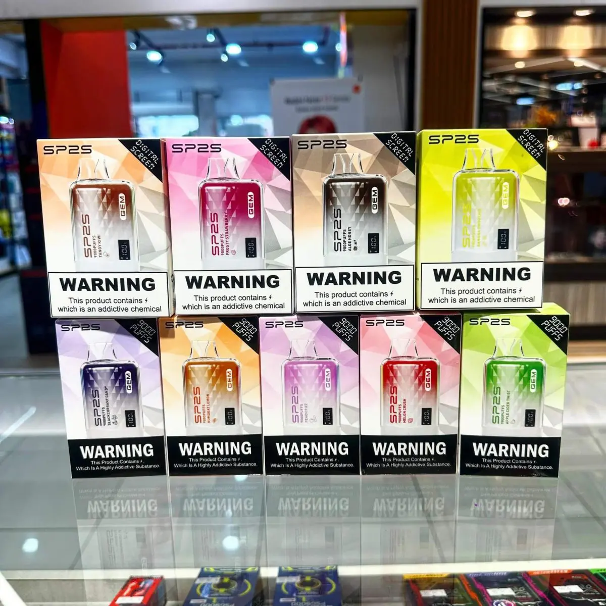 SP2 拋棄式電子煙 GEM 系列 9000口全新GEM系列,搭載智能螢幕與奢華水晶外殼,體驗高達9000口的極致享受